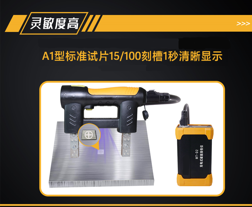 1、灵敏度:A1型标准试片15/100刻槽显示清晰,符合国家标准;
