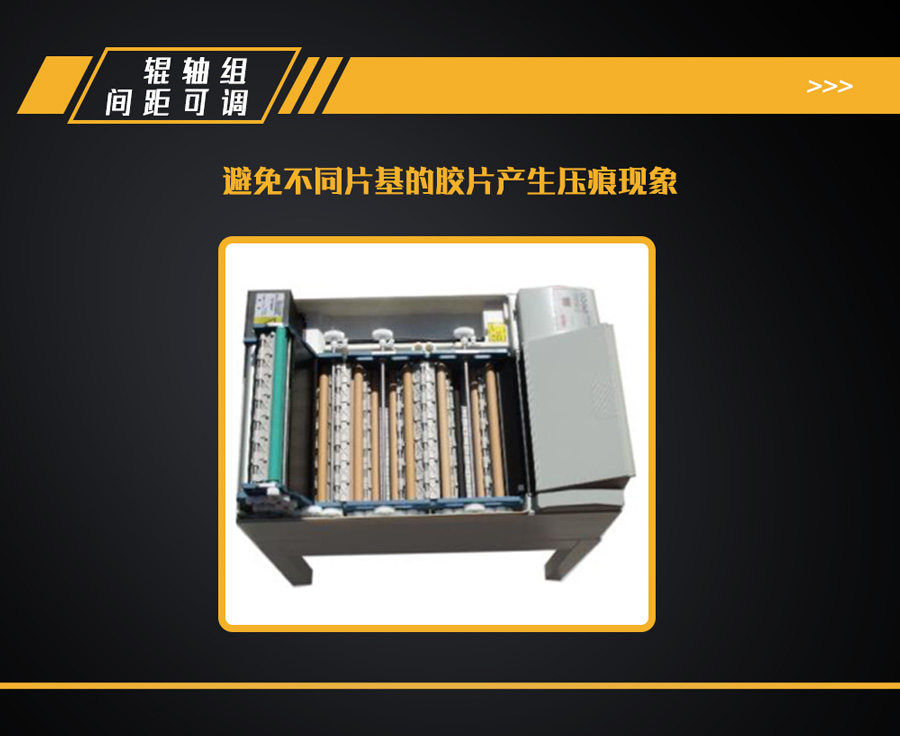 8、可调间隔、距离的辊轴组结构,避免不同片基的胶片产生压痕现象;